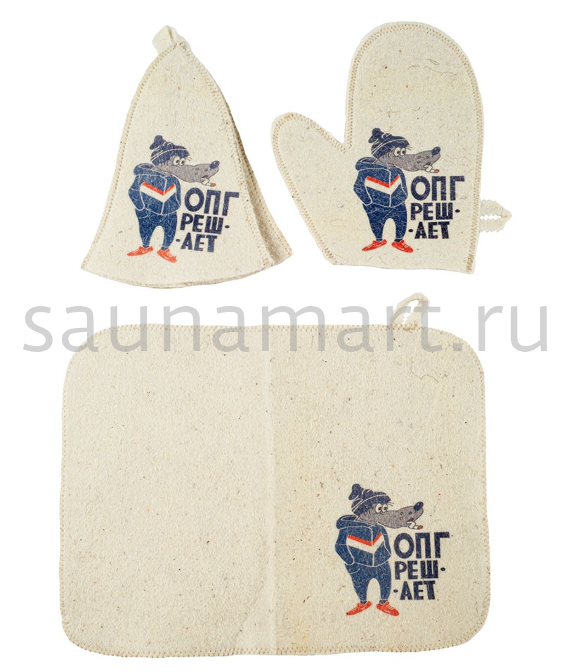Банный комплект - ОПГ решает ( сумка шапка варежка коврик )