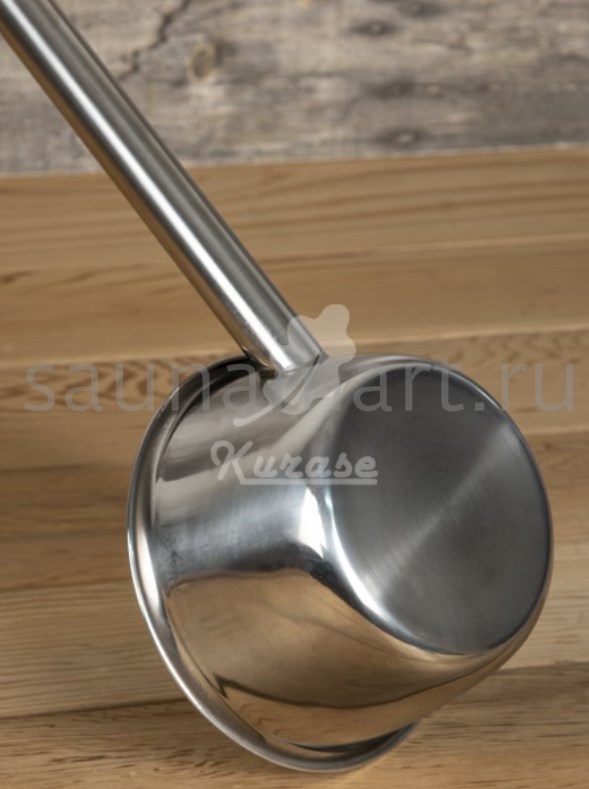 Объем 500 мл. Длина банного инвентаря 70 см, диаметр ковшика 12 см. Ручка выполнена и дерева бук, низкой теплопроводности. Длинная ручка позволит не приближаться к раскаленной печи. Для максимальной защиты рук от термического воздействия применяйте специальные войлочные рукавицы для бани. Металлическая часть ковша выполнена и полированной нержавеющей стали, что придает ковшу эстетичный внешний вид и предотвращает образование ржавчины, что значительно увеличивает срок службы изделия.