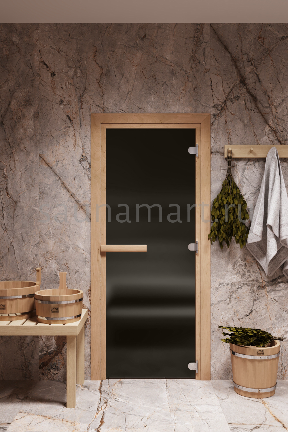 Дверь для сауны 1900х700 Графит матовый 8мм 3 петли ольха