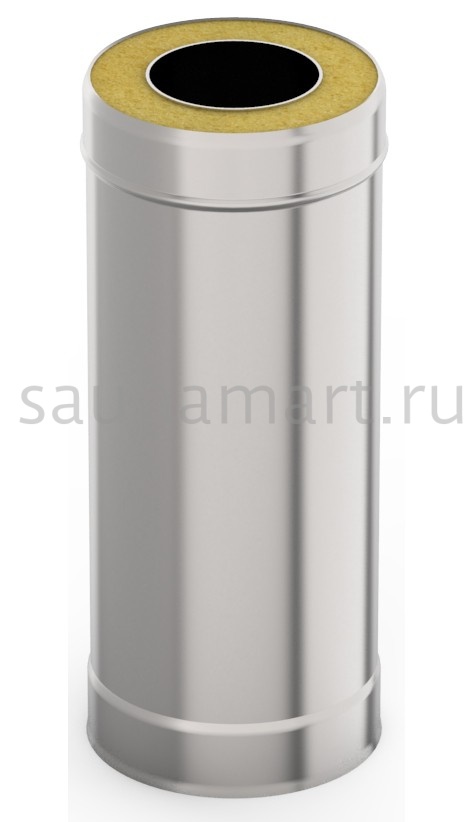 Изделие предназначено для монтажа вертикальных участков дымоходных систем банных печей и отопительных агрегатов. Маркировка "(К)" указывает на комплектность поставки. Качественная сталь AISI 430 обеспечивает устойчивость к температурам до 800°C и коррозионную стойкость, гарантируя безопасную и долговечную эксплуатацию дымохода.