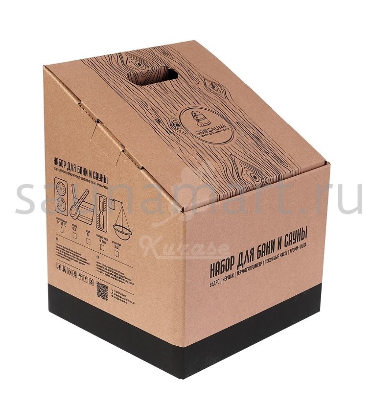 Все товары для бани и сауны подобраны в едином цветовом решении, стиле и будут смотреться очень гармонично в интерьере парилки. Такой подарочный комплект это - универсальные аксессуары для обустройства бани, которые совместно с другими банными штучками создают уют, комфорт, удобство и особенную атмосферу.