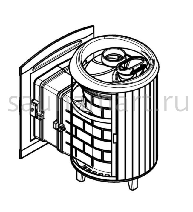 Модель с комбинированной облицовкой из нержавеющей сетки и ламелей. Особенностью данной модели является открывающаяся дверь с ламелями, что обеспечивает быстрый прогрев парной.