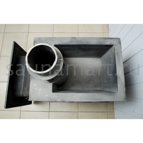 GFS-ЗК 40 (М) - печь с усиленной каменкой большей массы, с единым углублением внутрь топки для дополнительной укладки чугунного заряда. Теплосъемные шипы, со стороны горения пламени, в разы увеличивают площадь соприкосновения огня с каменкой и ускоряют передачу тепла, а также способствуют лучшему дожигу, смешивая потоки пламени и воздуха, поступаемого из воздушника. Эти усовершенствования значительно повышают мощность парообразования печи и выдают большее количество пара при непрерывной подаче воды. Каменка печей GFS-ЗК является незаливаемой.