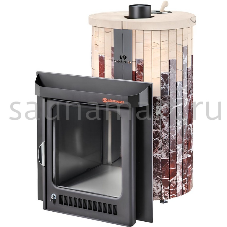Печи V?HRINGER с дровяной каменкой, у которой вся топка окружена большой массой камней, сильно разогревается, а дров уходит немного, благодаря полному сжиганию дымовых газов с помощью бокового и верхнего горения. Использование эффекта «Vortex», позволяет извлечь всю энергию и направить её на нагрев большого количества камней.