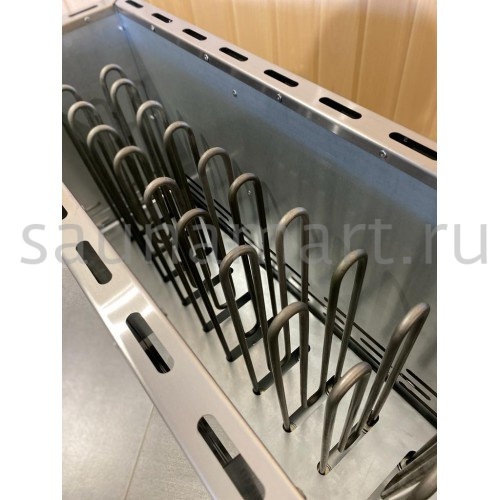 - Надежная циркуляция воздуха между ТЭНами и высокая теплоотдача каменки.