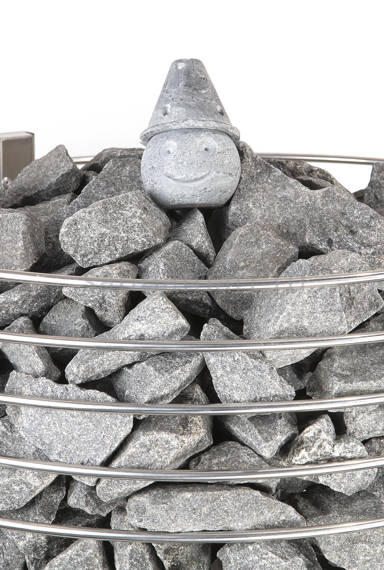 Электрокаменка "Зевс" выполнена в виде широкого цилиндра с радиусными прутьями, что позволяет вместить до 200 кг камня. Нагревательные элементы установлены по центру в специальном корпусе (кожухе), который не контактирует с камнем и поддаваемой водой. Камень закладывается только в пространство между внешним корпусом и до колпака с ТЭНами.