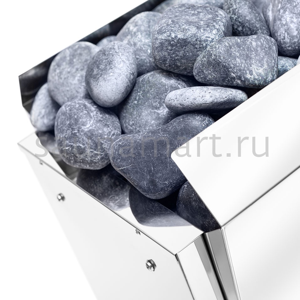 Каменка выдержана в лаконичном современном стиле, который сочетается с любым оформлением интерьера.