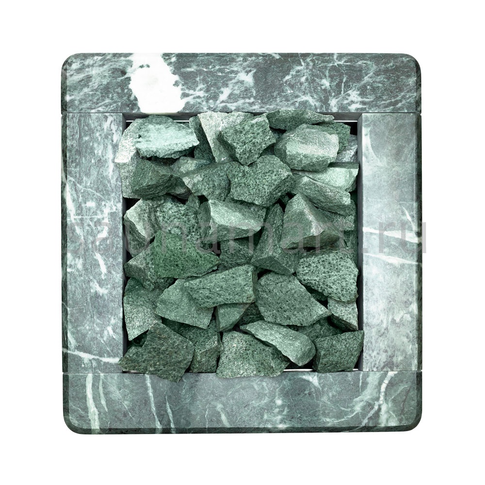- Целебные свойства: Электрическая каменка со всех сторон облицована натуральным змеевиком, который стильно смотрится в парильном помещении. Змеевик, называемый «аптекарским камнем», обладает целебными качествами: оказывает обеззараживающий эффект, положительно влияет на кости, успокаивает и укрепляет иммунитет.