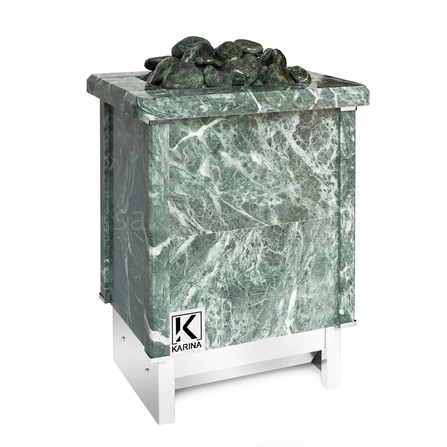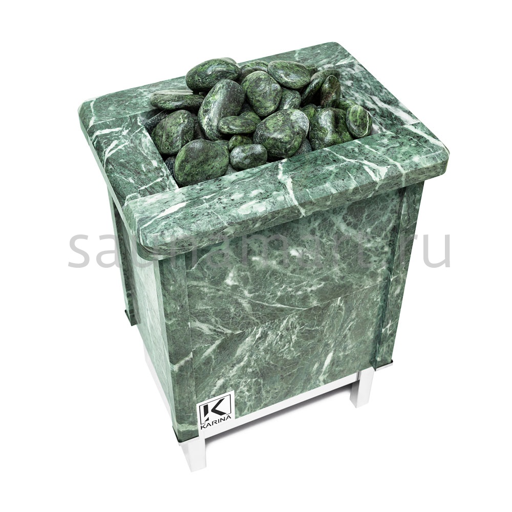 Электрическая печь KARINA Quadro 7,5 Змеевик представляет собой электрокаменку, полностью облицованную натуральным камнем, и способной прогреть семейные бани и сауны объемом до 9 м3.