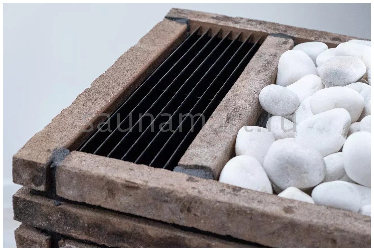 Электрическая банная печь Sangens W12B — 6-киловаттная модель из серии W для помещений 9-10 м? (9 м? для сауны, 10 м? для бани). Оснащена комбинированной каменкой (закрытый отсек: 25-45 кг камней, открытый: 15 кг) с нагревом до 530°C за 2.5 часа, прогревает парную до 70°C за 1.5 часа. Управление — дистанционное и ручное. Облицовка — ригельный кирпич (коричневый, 110 кг), общий вес — 165 кг. Габариты: 54?54?95.5 см. Камни приобретаются отдельно.