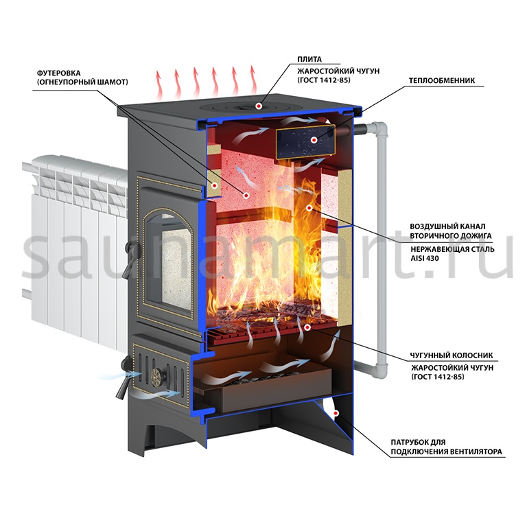 - Материал дверки: жаростойкий чугун (ГОСТ 1412-85)