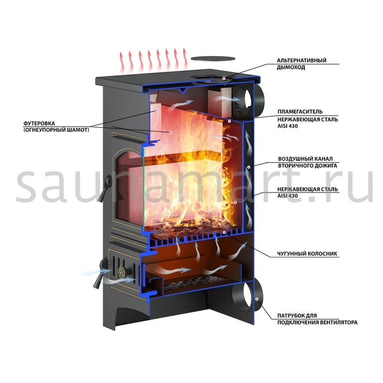 • Материал дверки: жаростойкий чугун (ГОСТ 1412-85)