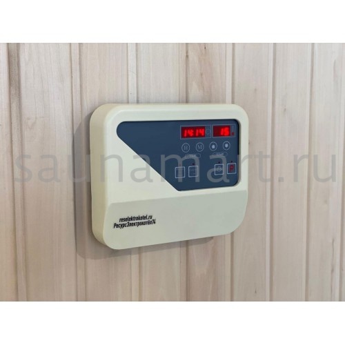 Пульт управления элeктрoкaмeнкой (электропечью для сауны) ПУЭКМ "Ресурс" цифровой программируемый до 21 кВт включительно. Пульт устанавливается в предбаннике, а датчик заводится в парилку. Длина кабеля с датчиком температуры 3 метра. Датчик с кабелем идут в комплекте с пультом. Возможно удлинение кабеля, методом наращивания.
