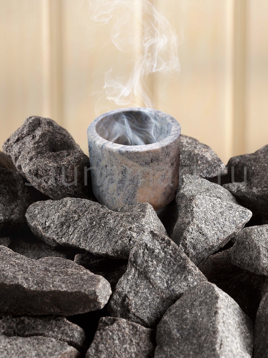 Насладиться качественной терапией в сауне помогут оригинальные чаши для аромамасел от компании Sawo. Изделия выточены из натурального камня талькохлорита. Талькохлорит равномерно нагревается и долго держит температуру. Чашу для ароматических масел устанавливают на край каменки и перед началом парения капают немного масел. Масла постепенно распространяются в парном помещении и не горят. Добавлять масла непосредственно на камни электрокаменки крайне вредно. Масло начнёт гореть и всё пребывание в сауне будет испорчено.