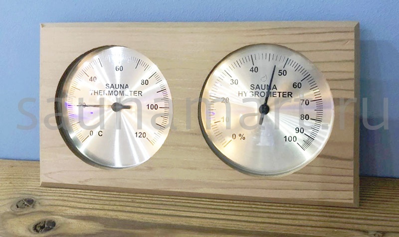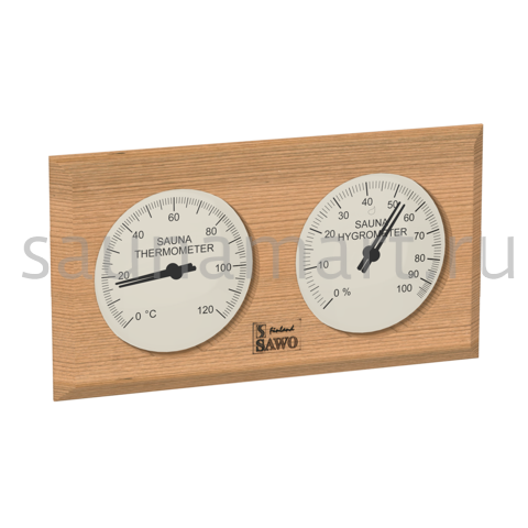 Термогигрометр 221-THED от компании Sawo имеет оригинальную прямоугольную форму. В широкой рамке из древесины кедра находится два квадратных окошка. Под стеклом каждого окошка расположен графичный циферблат. Один из них - это гигрометр, который с точностью измерит уровень влажности в парной, другой - термометр, который сообщит о температуре воздуха. Данный прибор прекрасно подойдёт для использования в любом парильном помещении. В нашем интернет-магазине представлен широкий ассортимент измерительных приборов в корпусах из разных видов древесины.