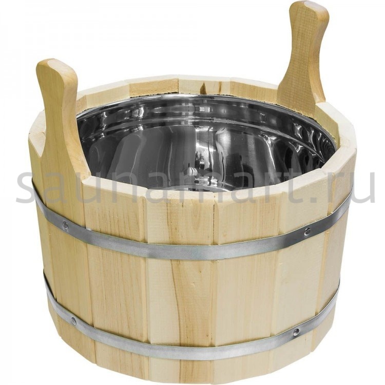 Шайка двуручная 7л (5.5л) с нержавеющей вставкой ШДН-7 КГТ Климов ОЛЬХА