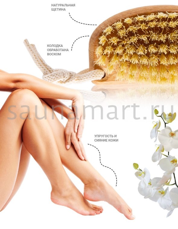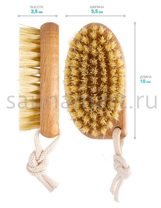 Щетка банная для сухого массажа из натуральной растительной щетины тампико, 79 пучков, средней жесткости, колодка обработана воском и льняным маслом, с петлей для удобного хранения. Размер 10х3,5х5,5 см. Щетка для сухого массажа тела поможет: отшелушить омертвевшие клетки эпидермиса; снять усталость; улучшить самочувствие и настроение. Щеткой можно массировать все тело. С ее помощью можно добиться эффекта иглоукалывания: после массажа похлопать по телу щеткой и Вы ощутите, как сотни щетинок одновременно укалывают кожу. Данная процедура оказывает бодрящий эффект, особенно в сочетании с контрастным душем. При применении щетки для сухого массажа, можно добиться: нормализации работы лимфатической системы; повышение тонуса кожи; выравнивания контуров тела и следов неровностей кожи (целлюлита); стимулирования выработки коллагена. Массаж проводится сухой щеткой, по сухой коже. Движения должны идти от стоп вверх к голеням, бедрам, ягодицам по направлению лимфотока.