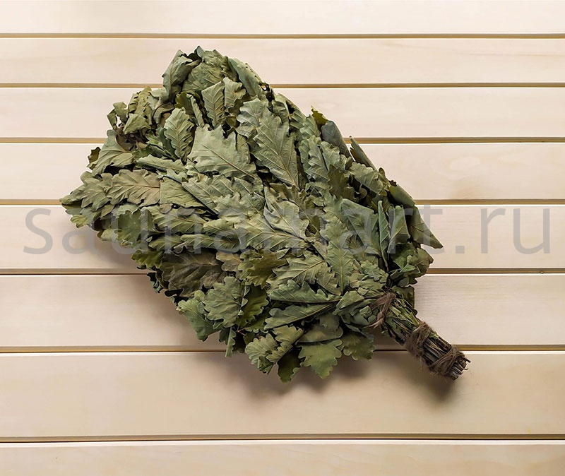 Листья и веточки дуба богаты эфирными маслами и дубильными веществами. Дубовый веник эффектно выглядит, ароматен, а благодаря особой форме резных и широких листьев он способен отлично впитывать пар.