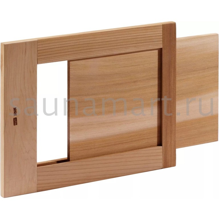 Прямоугольная вентиляционная задвижка из канадского кедра для бань и саун. Позволяет регулировать уровень вентиляции с помощью простого механизма закрытия.